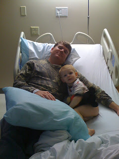 When we pulled up to the ER the nurses met us at the car. They took Tucker's temp (100.5), took blood and hooked him up to an IV. They did a little breathing treatment and then did a chest x-ray. They decided to admit us because his white blood count was elevated and just wanted to monitor him overnight since he had a seizure. We spent Tuesday night in the hospital and let us go home on Wednesday. Tucker took everything like a champ, but just couldn't understand why he couldn't get up and run around. Bless his little heart! Our Dr. told us the only thing they could come up with was that he had an allergic reaction to his flu shot. He did have a little respiratory issue going on but since he had not run a temperature or fever with it he didn't think that affected the flu shot. All I know is, that God was with us, and I never want to have to experience that again.